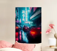 Porsche 911 in Neon Night – A Futuristic Street Dream alu-dibond