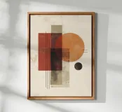 Modern abstract wall art in earthy rust, dust orange and beige tones. With its layered forms and textured design, this artwork brings warmth and structure to minimalist, retro, or Scandinavian spaces.