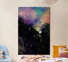 Silhouette on Cliff Edge with Abstract Celestial Forms alu-dibond