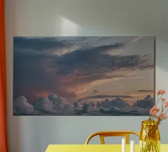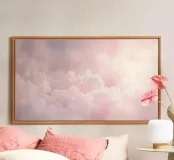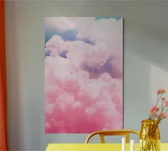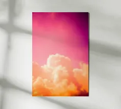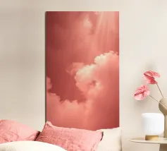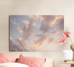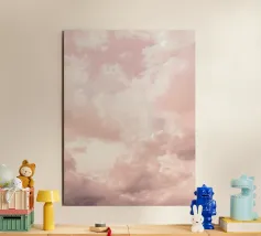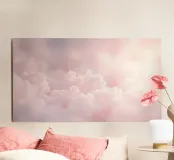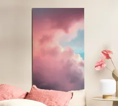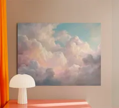 A dreamy landscape of fluffy pastel clouds fills the canvas, illuminated by soft light. This abstract design evokes a sense of calm and tranquility, perfect for various applications.