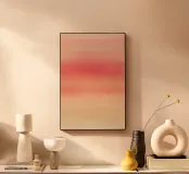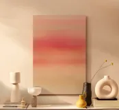 A serene abstract gradient featuring soft transitions of peach, rose, and warm beige tones, reminiscent of a gentle sunset sky. The painterly texture adds warmth and depth, making this minimal artwork ideal for modern wall décor, branding, stationery, digital design, or calming interior prints. Its smooth color flow creates a soothing visual atmosphere perfect for both artistic and commercial applications.