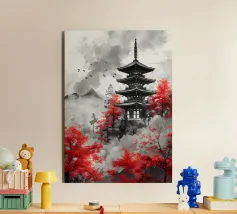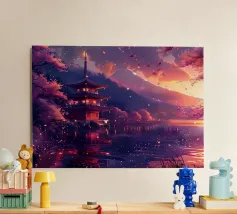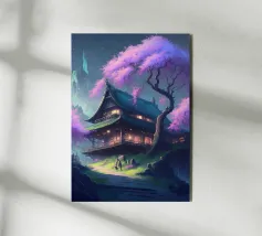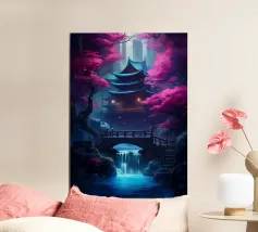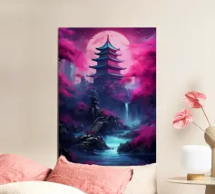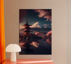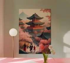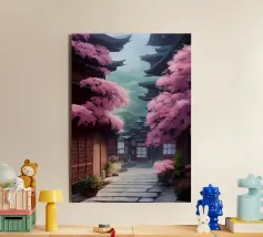 structure with ornate architecture surrounded by pink trees alu-dibond