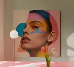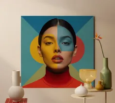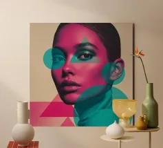 Woman's Face with Geometric Shapes and Color Blocking alu-dibond