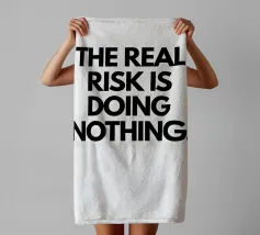 "The words 'The distance between dreams and reality is called action' arranged in a visually striking typography layout, emphasizing the power of taking action to achieve goals. The text is bold and impactful, set against a clean, minimalist background, creating a sense of motivation and determination.",