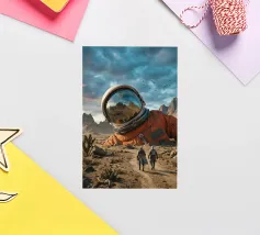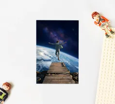 Experience the magic of travel and night skies with this atmospheric artwork featuring a hand gently touching an airplane window overlooking glowing desert dunes. A crescent moon shines in a deep blue sky filled with stars, creating a serene blend of wanderlust and wonder. The warm golden sands contrast beautifully with the cool night tones, capturing the feeling of solitude, reflection, and dreaming above the world. Perfect for travel lovers, minimalists, and fans of cinematic, dreamy window-view art.