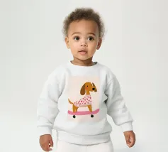 Our baby sweatshirts are made from 85% organic cotton and 15% recycled polyester.