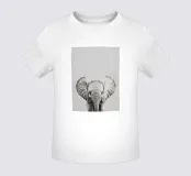 A cute portrait of a baby elephant with big eyes in a minimalist black and white illustration that captures the charm of nature.