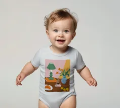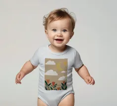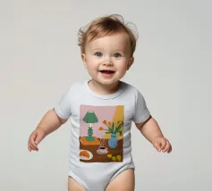 All short-sleeved baby rompers are produced and printed by our trusted local partner.