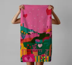 Terry velour with a mix of 60% microfiber and 40% cotton.