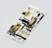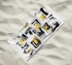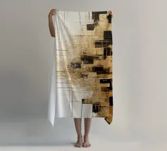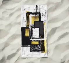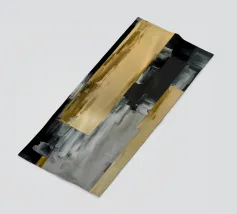 Modern abstract graphic design with a touch of elegance. Experimental vector painting with different brushes in black and white with golden highlights. Dynamic and very appealing contemporary design.