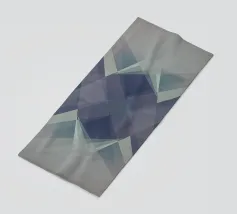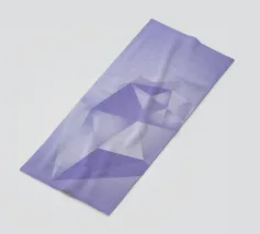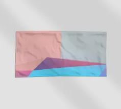 Vibrant abstract composition showcases a blend of purple and blue hues, forming sharp geometric shapes and smooth transitions that create depth and movement.