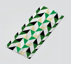 Add a touch of dynamism and retro style to your everyday objects with this bright geometric pattern. Alternating zigzag shapes, triangles and vibrant colours (emerald green, mint, coral and off-white), this design evokes the graphic trends of the 70s while retaining a contemporary touch. Perfect for fans of modern patterns, vintage design or bold decoration. This design is perfect for notebooks, phone covers, clothes, cushions or wall prints, bringing a unique visual energy to any medium.