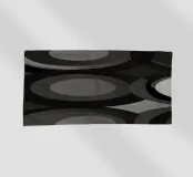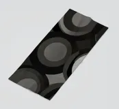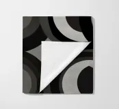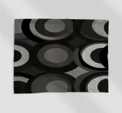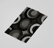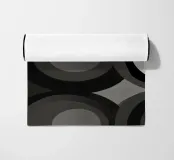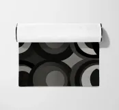 A vibrant array of overlapping circles in differing shades of gray, black, and white creates an engaging visual pattern. The design features contrasting tones that add depth.
