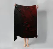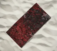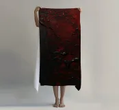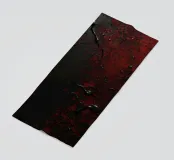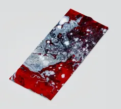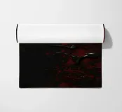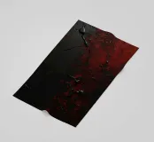 Bold black and red paint splashes cover a dark surface, creating an abstract design. The contrasting colors emphasize texture and depth, enhancing artistic expression.