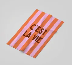 Embrace life's journey with this captivating "C'est La Vie" art print. The French phrase, meaning "Such is life," is rendered in bold, undulating typography in vibrant shades of green and purple, creating a dynamic, almost hypnotic effect. The letters are intertwined with playful organic shapes and subtle star accents, all set against a soft, complementary background. This piece captures a sense of philosophical retro psychedelia, perfect for adding an introspective and stylish touch to any space. This high-quality digital art is presented in a stunning 7000x5000 pixels resolution at 300 dpi,