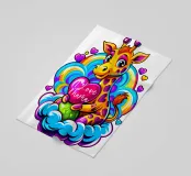 Bring home a touch of cuteness and warmth with this adorable design! Featuring a charming giraffe lovingly hugging a heart-shaped pillow on a fluffy cloud, all surrounded by vibrant rainbow hues. This playful and love-filled design is perfect for adding a cheerful vibe to any room, making it a delightful companion for cozy moments or as an eye-catching decorative piece. Perfect for: Adding a splash of fun to a child's room or as a unique gift for someone special.