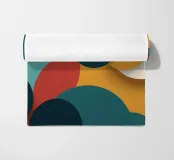 This artwork showcases an array of vibrant, overlapping circular forms in various colors, creating a lively and engaging abstract design that captivates the eye.