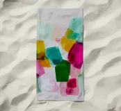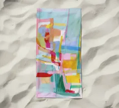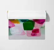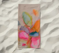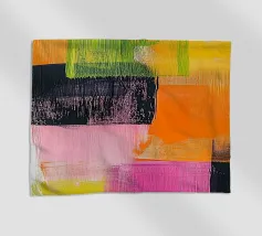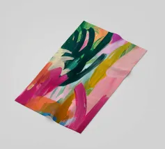 This modern, abstract acrylic poster uses vibrant splashes of pink, green, yellow and white. The flowing colours and geometric structures create a harmonious and dynamic composition. Ideal as a decorative work of art, it brings a fresh mood to any room.