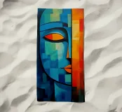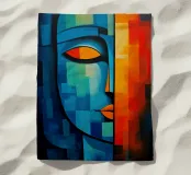 This cubist-inspired and emotionally moving esoteric composition splits the female face into two worlds: The left half sinks into icy blue tones, while hot orange and red tones blaze on the right. The geometric fragmentation is reminiscent of Picasso's cubism, but the vibrant colour palette and impasto brushwork lend the work contemporary power. The almond-shaped eye - at once a window and an enigma - hypnotically fixes the viewer. A haunting meditation on inner contrasts, duality and the complexity of human identity.