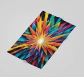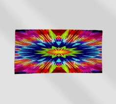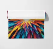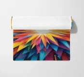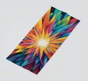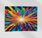 A dynamic arrangement of bright colors radiates outward, forming sharp triangular shapes that converge at a glowing center, perfect for modern digital art and desktop wallpapers.