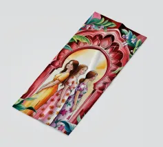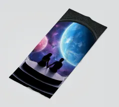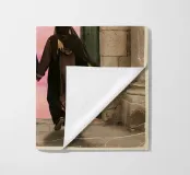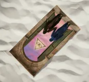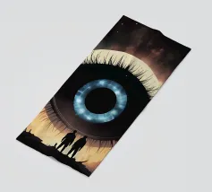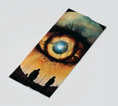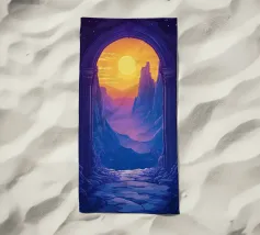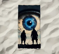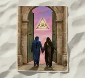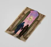 This surreal artwork portrays two robed figures walking hand-in-hand through an ancient stone archway toward a glowing sky of pink and violet hues. Above them floats a radiant geometric eye, symbolizing awareness, mystery, and deeper understanding. The blend of historic architecture, soft sunset colors, and symbolic iconography creates a scene filled with meaning and imagination. Ideal for fans of spiritual art, surreal storytelling, and thought-provoking wall décor that inspires curiosity and reflection.