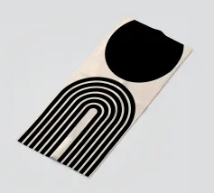 Explore minimalist geometric abstraction with this striking Bauhaus-inspired graphic art print. Featuring a captivating composition of geometric U-shaped or arch-like forms in bold colors (brown/orange and black), arranged in a rhythmic vertical pattern. This artwork embodies principles of abstract form, color, and composition, with a contemporary feel influenced by the Bauhaus movement, highlighting the power of simple repeated geometric elements and color contrast. This high-quality digital art file boasts a stunning 7000x5000 pixel resolution at 300 dpi, ensuring exceptional detail and clar