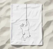 The playful and adventurous spirit of a cat hanging on a string with this minimalist line drawing. A modern abstract art piece that symbolizes curiosity, agility, and feline mischief.