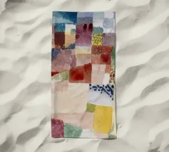 Immerse yourself in the captivating world of Paul Klee with "About a motif from Hammamet," a striking abstract work from 1914. This piece embodies Klee's exploration of color, rhythm, and form, inspired by his travels. The painting features a complex arrangement of multi-colored blocks and textures, creating a harmonious yet dynamic composition that invites contemplation. It showcases his masterful ability to convey emotion and structure through abstraction. Our digital poster faithfully reproduces this iconic artwork with stunning clarity and detail, boasting an impressive 7000x5000 pixels at