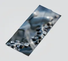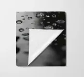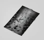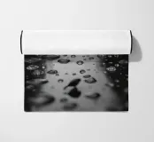 Droplets of water scatter across a sleek, reflective surface, capturing light in an abstract formation. This minimalist background offers a serene and calming vibe for mobile devices.