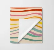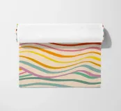 A joyful and expressive abstract waves pattern featuring flowing, wavy lines in a retro rainbow-inspired palette — from soft orange and warm pink to bold turquoise, aqua, yellow, and red — all gently layered over a warm ivory background. Minimal yet impactful, this design celebrates the beauty of differences and the harmony found in diversity. A striking and uplifting piece that honours Pride, Equality, and self-expression — perfect for wall art, home decor, and everyday accessories that embrace individuality and colourful rhythm.