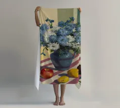Terry velour with a mix of 55% microfiber and 45% cotton.