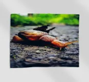 Snails are small mollusks that carry a spiral shell on their backs that acts as a mobile home. The shells are usually brown, pale yellow, or striped, and glisten slightly in the light. Snails have long, soft, grayish-brown, slightly slimy bodies that help them glide along the ground. They have long antennae with eyes at the tips, and shorter antennae that they use to sense their environment. They often appear after a rain, crawling slowly on leaves, grass or walls, evoking a feeling of gentleness and patience.