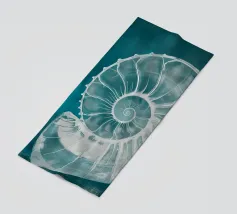 A blue nautilus shell in soft blue tones against a white background radiates calm and aesthetics. Its spiral shape and simple beauty invite the viewer to explore the secrets of the underwater world. A timeless work of art in a maritime style.