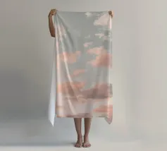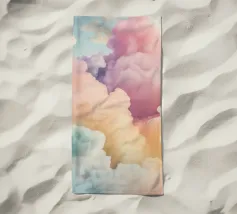 A dreamy landscape of fluffy pastel clouds fills the canvas, illuminated by soft light. This abstract design evokes a sense of calm and tranquility, perfect for various applications.