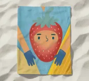 A charming illustration of a person wearing a strawberry costume with a cute expression.