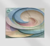 Intricate spiral shapes in soft pastels blend harmoniously, giving the illusion of flowing motion against a pale backdrop. The design captivates with its gentle curves.