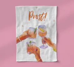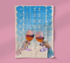 A fun and nostalgic design titled "Let's Have a Drink," featuring the playful phrase in bold retro font, paired with the lively image of people clinking glasses in celebration. The vintage-inspired typography and joyful scene capture the spirit of good times and social connections. With warm, inviting colors and a sense of excitement, this artwork is perfect for those who love to unwind and enjoy the company of others. Ideal for home bars, kitchens, or social spaces, this print adds a touch of retro flair and celebratory energy to any room. A great addition to wall art, posters & more.