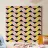 Geometric patterns repeat in a symmetrical design, featuring triangles and rectangles in black, yellow, and pink. The structured arrangement creates a visually striking and orderly composition.