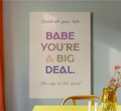 Bring positivity into your space with this canvas wall art. Featuring the uplifting phrase, “Babe, you’re a big deal,” it’s perfect for creating a motivational atmosphere in any room. Ideal for gifting or personal enjoyment, this artwork adds charm and encouragement to your lifestyle.