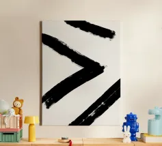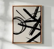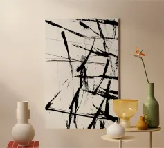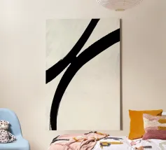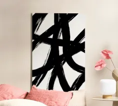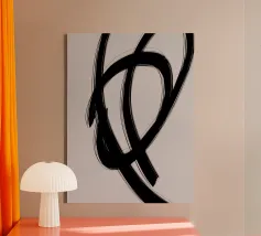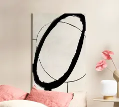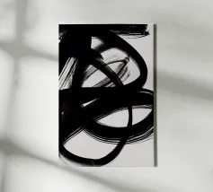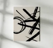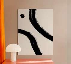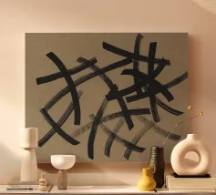 Stylish, modern and abstract artwork with large brush strokes and circles in a black colour with beige background. It gives a nice modern look to your interior. Suitable for basic, modern, Scandinavian and boho, bohemian living styles. If you like sleek and simplistic. A timeless artwork for your wall.