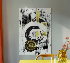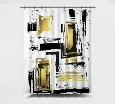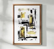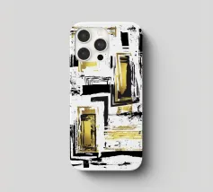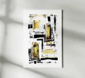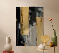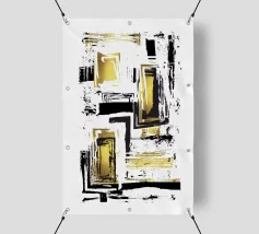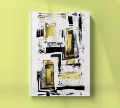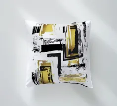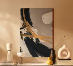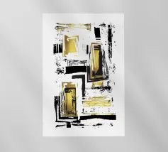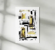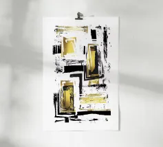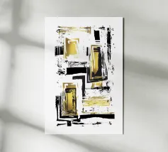 Modern abstract graphic design with a touch of elegance. Experimental vector painting with different brushes in black and white with golden highlights. Dynamic and very appealing contemporary design.