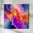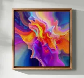 Vivid abstract art displays dynamic swirls and flowing patterns in a mesmerizing blend of bright colors including blue, purple, orange, and pink. The artwork captures a sense of movement and energy.
