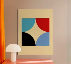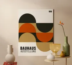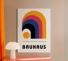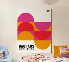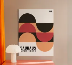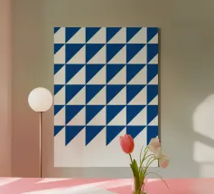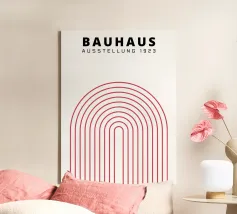This graphically clear, abstract Bauhaus motif shows a rhythmic triangle and square pattern in strong red on a warm cream background. The strictly geometric arrangement creates an exciting balance of dynamism and order and is reminiscent of classic Bauhaus and mid-century design principles. Through the deliberate use of contrast and repetition, the pattern appears modern, timeless and architectural at the same time. The reduced colour palette lends the design calm and strength without losing expression. Ideal as a wall mural for living rooms, design posters, modern wall art.
