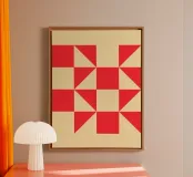 Abstract Bauhaus triangular pattern in red and cream canvas