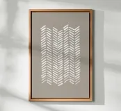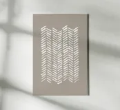 Modern abstract design featuring repeating columns of white, angled lines arranged in a chevron-like pattern against a beige background, creating a visually striking and dynamic effect.