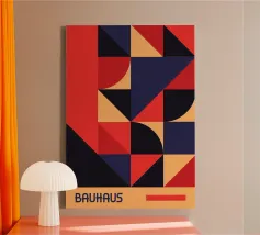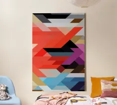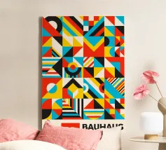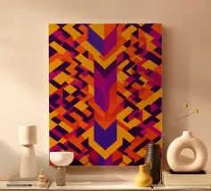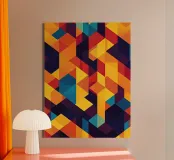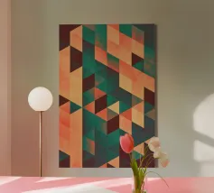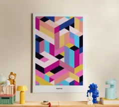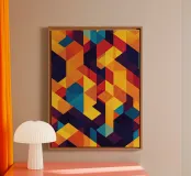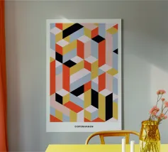 A visual powerhouse of form and colour: this poster is reminiscent of the Op Art style of the 1960s, combined with the rhythm of Bauhaus design. Cubes and prisms interlock to create a vibrant mosaic of warm colours such as yellow, red, orange and petrol. The complex three-dimensional illusion creates depth and movement - a clear statement for creative spaces that perfectly combines architectural thinking and modern aesthetics.