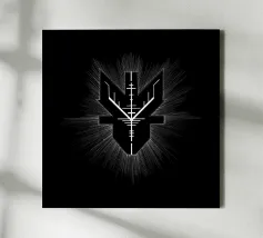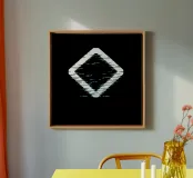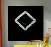 A striking design showcases a distorted diamond shape made of white lines, set against a solid black background, capturing the essence of digital art.