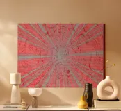 Abstract dynamic pattern in the colours grey and red canvas