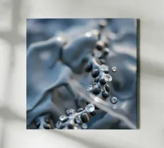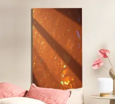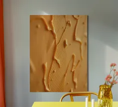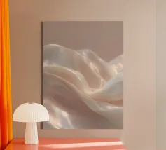 This captivating design showcases textured fabric flowing gracefully, accentuated by tiny droplets of water catching light. The warm orange hues create a dynamic and soothing background.