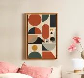 Abstract Geometric Composition of Shapes and Colors canvas with Floater frame